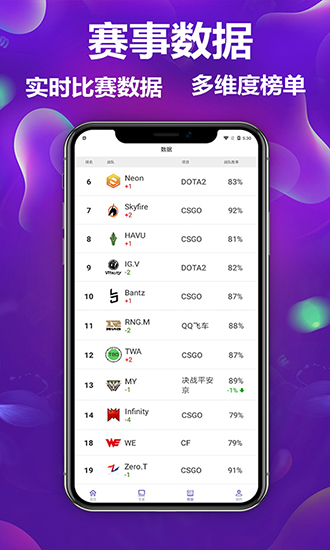 8、【即时数据】全面了解各路球友对局数据,提供即时历史数据分析。