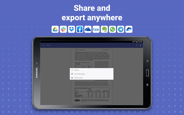 您可以随时随地查看扫描文件。您还可以通过该应用程序将其导出到您的设备。