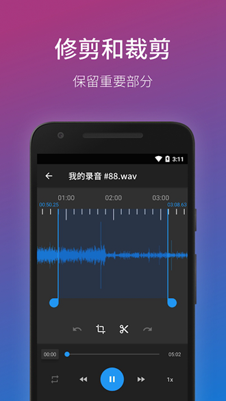 ―如果您的移动设备上没有足够的空间,那么录音会自动保存在SD卡上的音乐文件夹中,以便您快速访问。您可以自由拖放您最喜爱的歌曲,并在录像时暂停录音或删除录像。‷在录音过程中保持同步。■您可以对录音进行编辑。ₐ:您可以设置一个新的录音模式,或在录音时改变播放速度。⁄:您可以根据需要重新排列录音,或者使用“重复”功能来管理录音。▾: