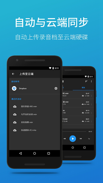 AAC等格式,以方便离线工作。您还可以与GoogleDrive、Dropbox、OneCloud等同步记录您的录音。