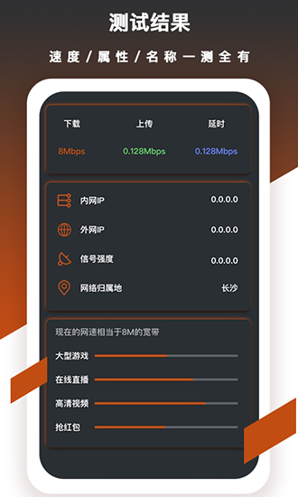 测速猫是一款专业的手机网络测速神器,支持2G、3GP、WiFi、GPS、Wifi、4g、5f等主流移动设备的网络连接情况实时监测和分析;同时提供网络诊断以及网络诊断服务,让用户随时随地轻松了解网络状况。