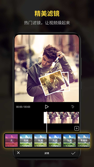 3、多媒体支持:支持从相册导入照片到手机上编辑器等方式保存您的创意故事,实现高质量录像效果;