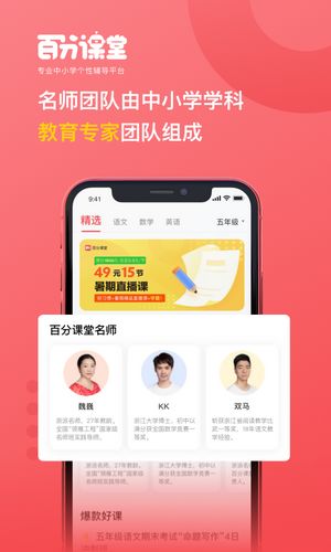 百分课堂是一款十分专业的在线教育平台,用户可以在上面进行线上课程学习哦,涵盖了中小学阶段的全部教材知识点内容和各种各样的考试题目等你来练习哦,有需要的小伙伴赶紧下载试着吧~