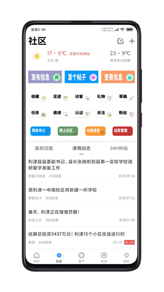 利津人儿是专门为当地居民打造的便民生活服务平台,在这里你可以享受本地的生活资讯和政务、民生等相关的内容。线上可以查看最新的新闻动态以及各种各样的活动信息等等;还可以在社区里和其他人进行交流讨论,也能在线办理相关的业务哦。欢迎有需要的朋友下载使用!