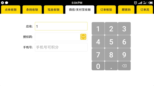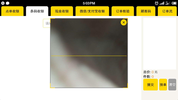 使用手机摄像头进行顾客自助操作完成日常开单流程,提升办公效率。