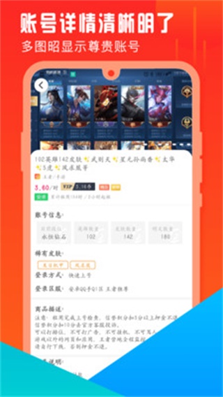 1.【海量游戏】海量的账号任意选购:王者荣耀/和平精英英雄联盟LOL/原神绝版皮肤(lol)、steam游戏(CF),QQ飞车、DOTAGO等多款游戏应有尽有;