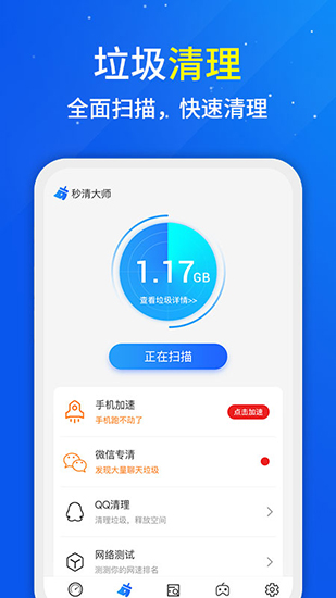 秒清大师app是一款安卓手机清理软件,使用其能够快捷进行垃圾文件的扫描。快速查看病毒信息情况以及隐私保护等功能操作体验。需要的用户赶紧看看吧!