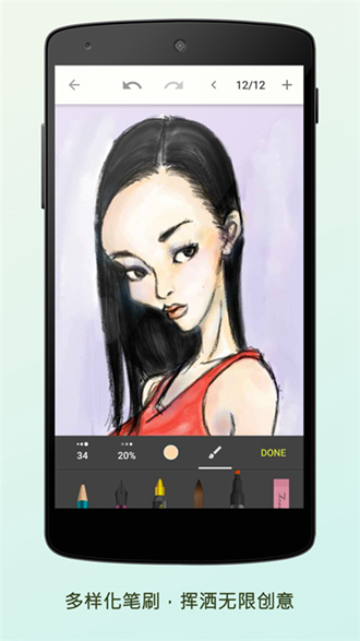 *随时随地写文字:使用印象文档或图像快速创建文本并将其转化为可缩放矢量图形-使用内置的笔刷库(如橡皮擦)。