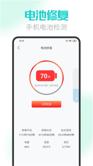 手机电池医师极速版是一个非常实用的电池管理工具;能够有效的延长用户的寿命,、实时监测设备运行状态及耗电量消耗情况等多项服务!