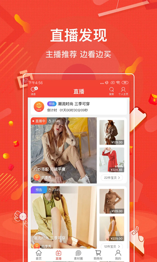 四季秀是专为电商创业人群所打造的一款优质短视频购物平台,在这里你可以随时随地观看诸多的精彩短视频内容进行欣赏。在四季秀app中系统拥有着丰富的商品信息资源以及多样化的分类板块可以任你选择购买自己喜欢的产品;并且这里还推出有诸多专业的网红主播为你实时直播展示才艺表演、生活百态等动态数据供你查看了解并关注他人最新动态消息提醒服务,