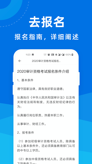 审计师宝典能够让每个想考取资格证书的用户获得资格证,这里有全面的考试信息以及最新的政策资讯供你查看和了解。并且软件还提供了相关的学习内容让你快速掌握相关知识点哦。