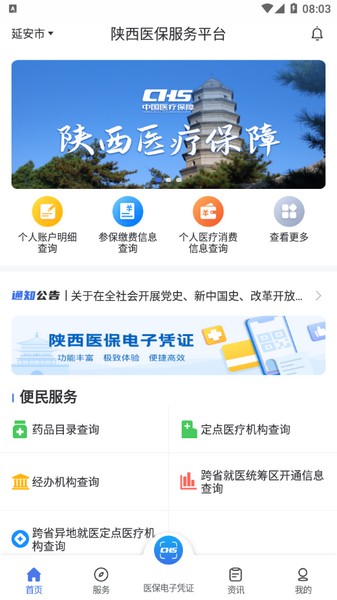 陕西医保公共服务平台是专为陕西人民打造的一款便民应用,用户可以在这里查询医疗账户余额、缴费信息以及挂号等多种功能。同时还提供了门诊费用预付及就诊记录查看和在线支付等多项特色内容供用户使用!