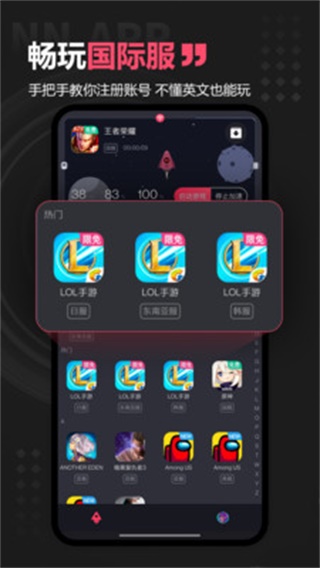 1、【免费加速】免费支持英雄联盟LOL、绝地求生PUBG2DMobile等多款游戏;