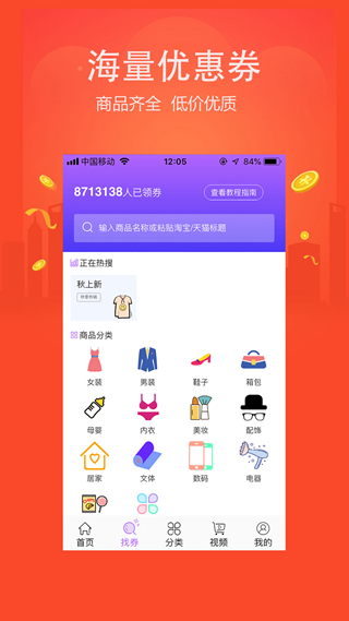 精心挑选各种类型商品专区:女装男装美妆护肤,鞋包配饰应有尽有,还有超多大额优惠券领不停,天天双十一