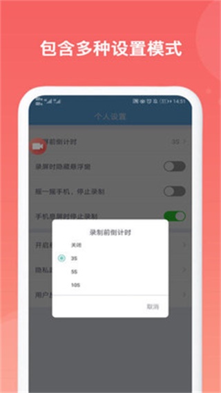 悬浮窗快捷启动、摇一晃手机即可结束录制。