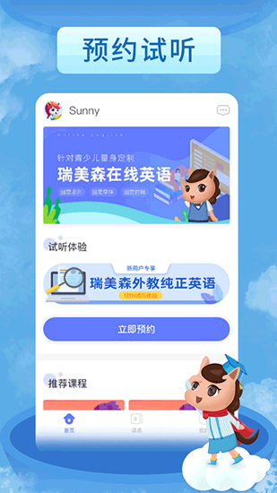 瑞美的森,专注于少儿英语的在线学习App。瑞美森致力于培养孩子的语言能力,为孩子提供丰富的学习资源与优质服务。我们拥有国际顶尖的专业团队,他们具备独特的学习能力,拥有海量的教学经验,以先进的AI互动技术为基础,结合动画场景设计了多媒体课件,并根据不同年龄段的学生特点定制合适的学习计划,帮助孩子们从小爱上学英语,让学习更具趣味性。
