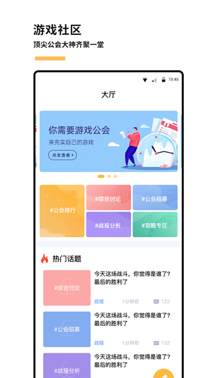 随时随地都能在线参与社区内的讨论探讨让更多的游戏玩家能够认识更多的朋友.