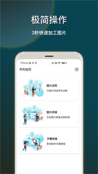 带壳截图是款图片后期处理编辑手机app,一款非常受欢迎的手机截图软件,可以帮助你轻松制作带壳截图效果。支持多种格式导出和剪切功能哦,操作方便简单易上手,有兴趣的小伙伴快来下载吧!