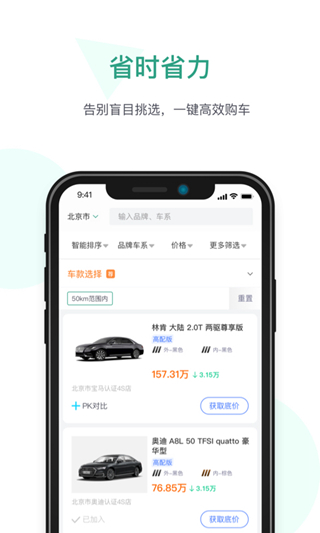 2、最专业的汽车报价系统:“一键发布”,即时查看市场行情,省钱省力。