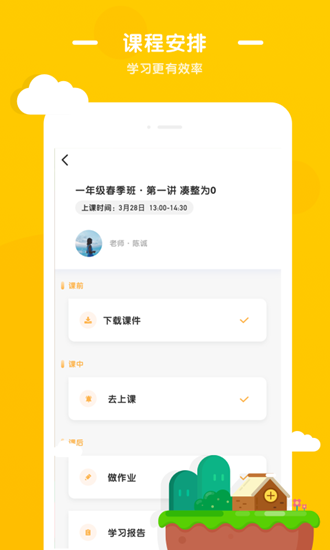 -即时掌握学生学习状态,随时随地推送进度动态提醒,教师还可将每一次学习数据分享给学生,方便家长督促孩子的学习。