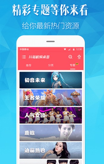 抖喵视频桌面高清热门短视频大全——手机上的壁纸大全,拥有时下流行的网红壁纸与精彩视频内容,分类清晰明确,便于查找哦~