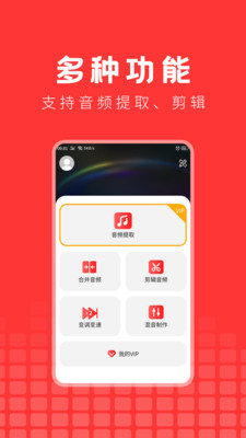 通过读取本地歌曲信息,轻松把视频中的音乐分离出来,还可以调节音频的速度(速度)和质量,随意拖动来改变音频的速度。
