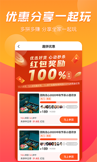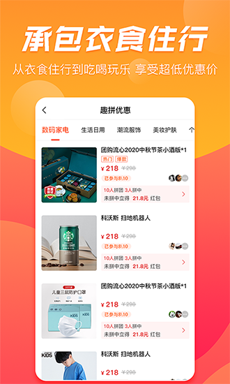 趣拼优惠由福州灰度有限公司开发制作的一款省钱购物软件,用户在这里可以享受到海量的商品资源进行购买哦。这里有着超多的优质好物等着你来选购哟,感兴趣的朋友快来下载体验吧!