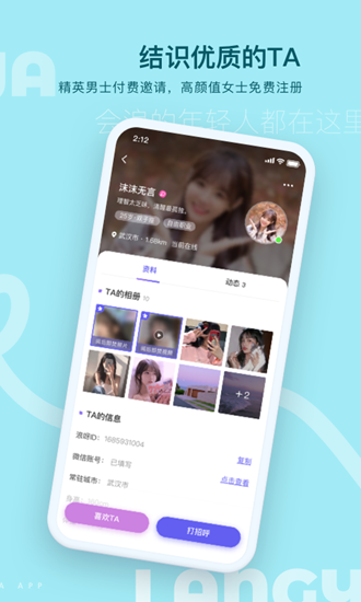 浪呀app是一个专为年轻人打造的社交平台,在这里可以轻松找到自己喜欢的人。你可以随时在线与他人进行交流,还能分享自己的精彩生活点滴哦。