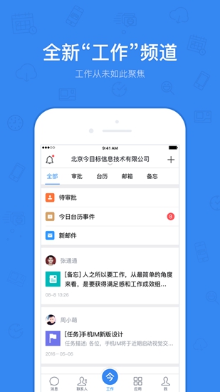 今目标是一款为企业内部人员打造的一款线上办公平台,在这里可以帮助员工更好的沟通交流工作信息。通过今目标app随时了解企业的最新动态资讯以及各种服务内容等你来体验哦!