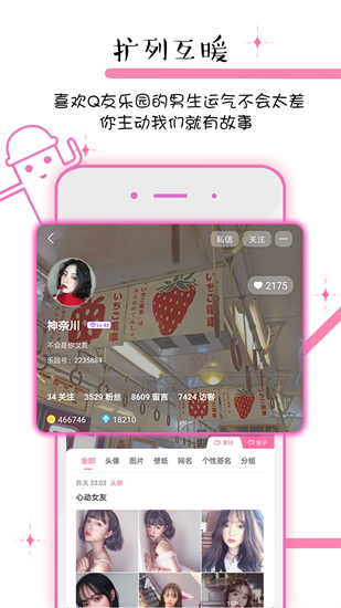 QQ友乐乐园是一款全新的社交类app,QQ社交、QQ空间等多种功能应有尽有。QQ群聊是QQ用户最喜爱的互动工具,QQ群聊支持发送语音、图片、文字、表情包等信息内容给QQ好友或者群友之间分享动态趣事等等.