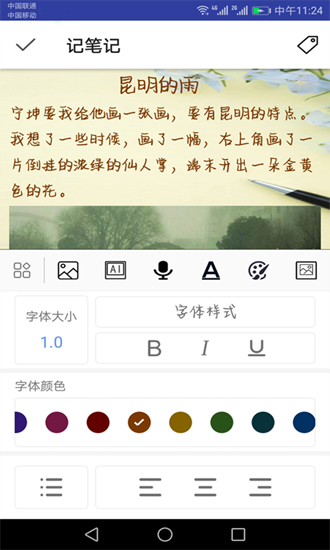 字体笔记app是一款非常方便好用的文字记录软件,可以让你在手机上轻松添加自己想要的内容。通过该软件用户就可以快速进行内容编辑和整理、保存以及分享等操作了,而且还可以使用语音输入来帮助你更好的识别各种语言!感兴趣的小伙伴赶紧来下载吧~