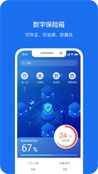 数字保箱app是由杭州天龙信息技术有限公司开发并发行的一款非常专业的手机保险箱类管理工具应用,它能够帮助用户轻松地在线对自己的保险产品以及理赔服务等提供最优质的服务支持;同时还为用户提供了全面的安全保障功能及智能推荐系统为你推送更多你喜欢的意外险、财产险等等类型保护你的权益,感兴趣的用户快来绿色资源网下载吧!