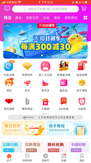 2、【特惠】低至1元,限时抢购,更有大牌商品低价格限时秒杀。