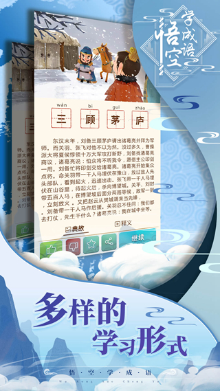悟空学成语是专为孩子所打造的趣味学习app,在这里有着丰富的成句知识和典故内容等你来查看!通过生动的动画形式呈现出更加精彩的成文故事、成语释义等等。让你可以更好地了解成语的文化,提高自己的成语储备量。感兴趣的朋友快来下载体验吧!