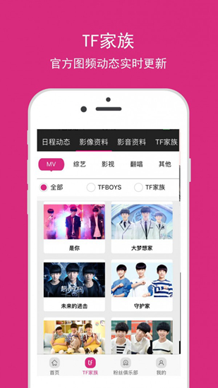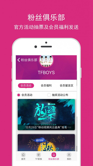 tf家族app是一款专为TFBOYS粉丝打造的粉丝互动软件,在这里可以了解TFEXO的最新动态消息内容。用户可以通过手机在线参与艺人活动进行交流学习,还可以与其他爱豆进行互动哦。