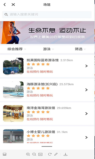 通过手机即可在线预约线下的训练场馆信息并报名参加体育活动等多种服务项目中体验;