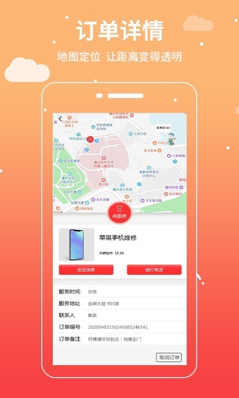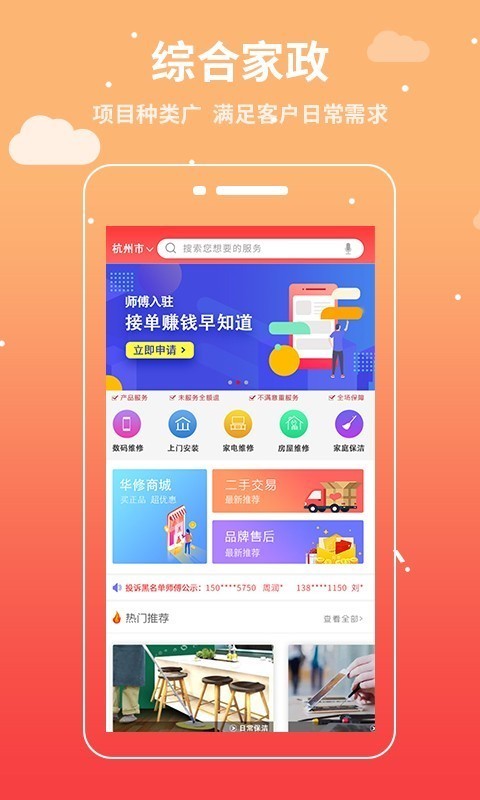 华修app可以帮助家政人员在线预约上门服务,软件会智能推荐附近的家政师傅为你接单并提供专业的上门护理服务。在你使用手机时遇到什么问题直接联系平台客服即可解决,让你享受最便捷的家政体验。