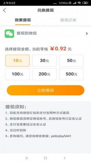 3、“我的”页面查看提现记录以及其他功能(如修改账户密码等)
