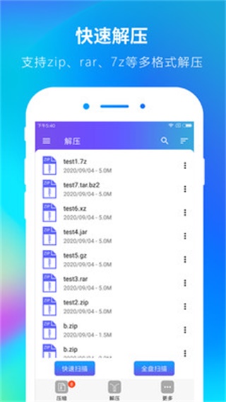 ZIP解压大师是款简单方便的手机解压缩工具,开启之后用户们就可以快速获取我们的文件和资料信息。软件用法也比较方便适合我们进行各种选择并完成自己的使用体验。想要试试本款软件的朋友不妨速速下载吧!