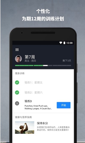 6、您可以轻松添加您的个人目标项目,并在每天开始之前按照计划进行练习。您也可以根据自己的进度调整动作强度。