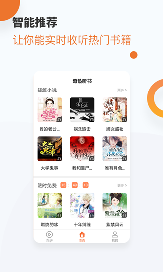 7.“奇热听单”是北京爱豆网科技有限公司开发的有声书籍应用,拥有数百万本小说库,包含都市言情、玄幻修仙、恐怖惊悚、青春校园、穿越架空、科创板、职场竞技......总有一类适合您!