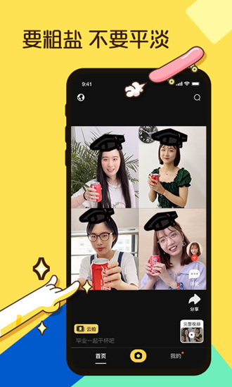 4、【视频同框】多种比例和样式,如1:1、2:1、5:5等多比例视频互动,让视频更欢乐。【视频涂鸦】在视频任意位置画出画笔,尽情挥洒创意。