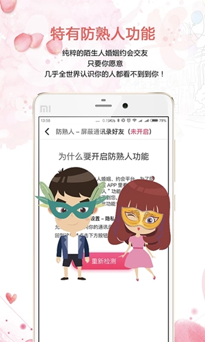 这里是一个非常专业的婚交友和同城相亲社交应用,旨在为用户打造一个全面且安全的线上相亲模式,帮助他们轻松找到理想对象,促进美好生活。通过该平台进行精准匹配推荐可以更准确地满足用户的多样化需求,同时还可以享受在线线下见面的机会,大大提高了相亲成功率和效率。