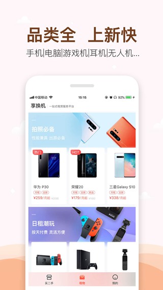享换机是专为手机买卖租赁所展示的交易平台优势: