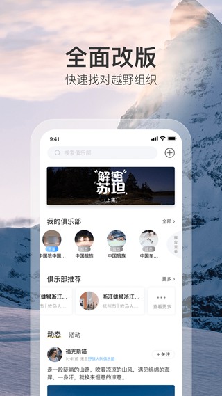 登山侠是专门为广大喜欢徒步的用户们提供的一款社交互动应用,在这里你可以认识更多志趣相投的人,结交到更多好友。同时还可以通过平台发布自己的动态信息或者自己寻找志同道合的队友共同组团骑车、徒弟野史、山地露营等相关的内容供他人查看了解。喜欢跑马车的朋友们欢迎来本站下载使用吧~