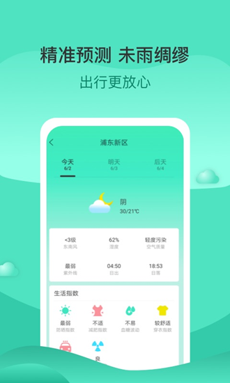 根据天气的变化给出的生活指数提示建议适合穿衣或洗车哦!