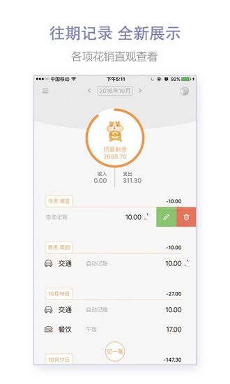 5、10秒极速记账:3分钟即可上手,记账过程快速简洁。
