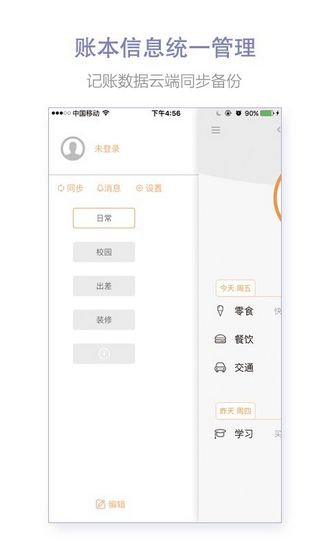 8、3种记账模式:普通记账,随手记账,生意记账,学生记账,旅游记账,装修记账,家庭账本,随身记账,随心管钱好帮手。