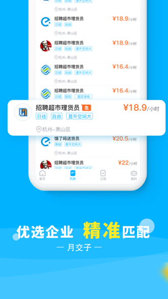 月交子是一款专注于为年轻群体打造的兼职平台,旨在帮助年轻人快速入职,解决就业问题。月交子是国内首家致力于提供高质量、便捷高效的一站式求职体验。我们致力于为每个人提供高薪职位展示的机会,让他们更轻松地了解自己,提升自我竞争力。月交子不仅提供了丰富多样的功能和服务,更以其全面的服务赢得了一众用户的赞誉和认可,为每一位渴望尝试新技能的企业提供了一个可靠而专业的工作环境。赶快下载试一试吧!