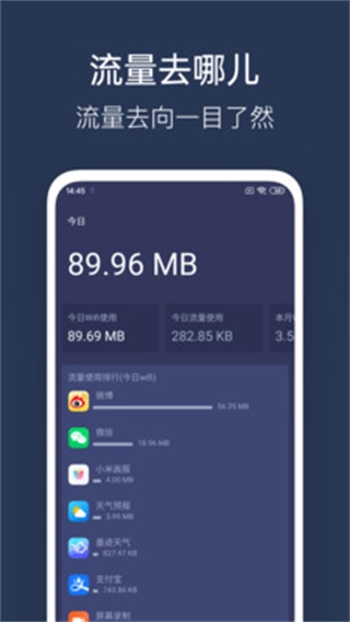 可以准确记录用户的上网流量消耗,通过图表的方式为用户展示了各种类型的流量报告单供用户参考选择,
